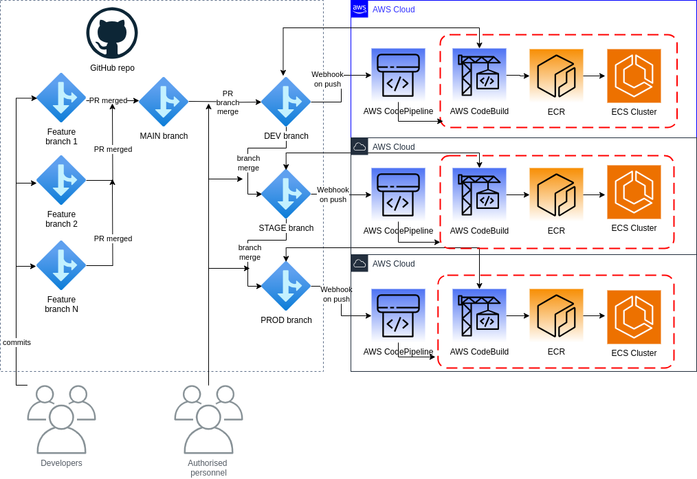 Целта на настоящата дипломна работа е да изследва и демонстрира практическия процес по изграждане на модерна облачна архитектура, интегрираща контейнеризация с Docker и оркестрация чрез Amazon ECS. Методологията на работа включва използването на Terraform и Terragrunt за управление на инфраструктурата като код (IaC), което гарантира преизползване на кода без дублирането му при изграждане на нови среди за работа и минимизира човешките грешки.