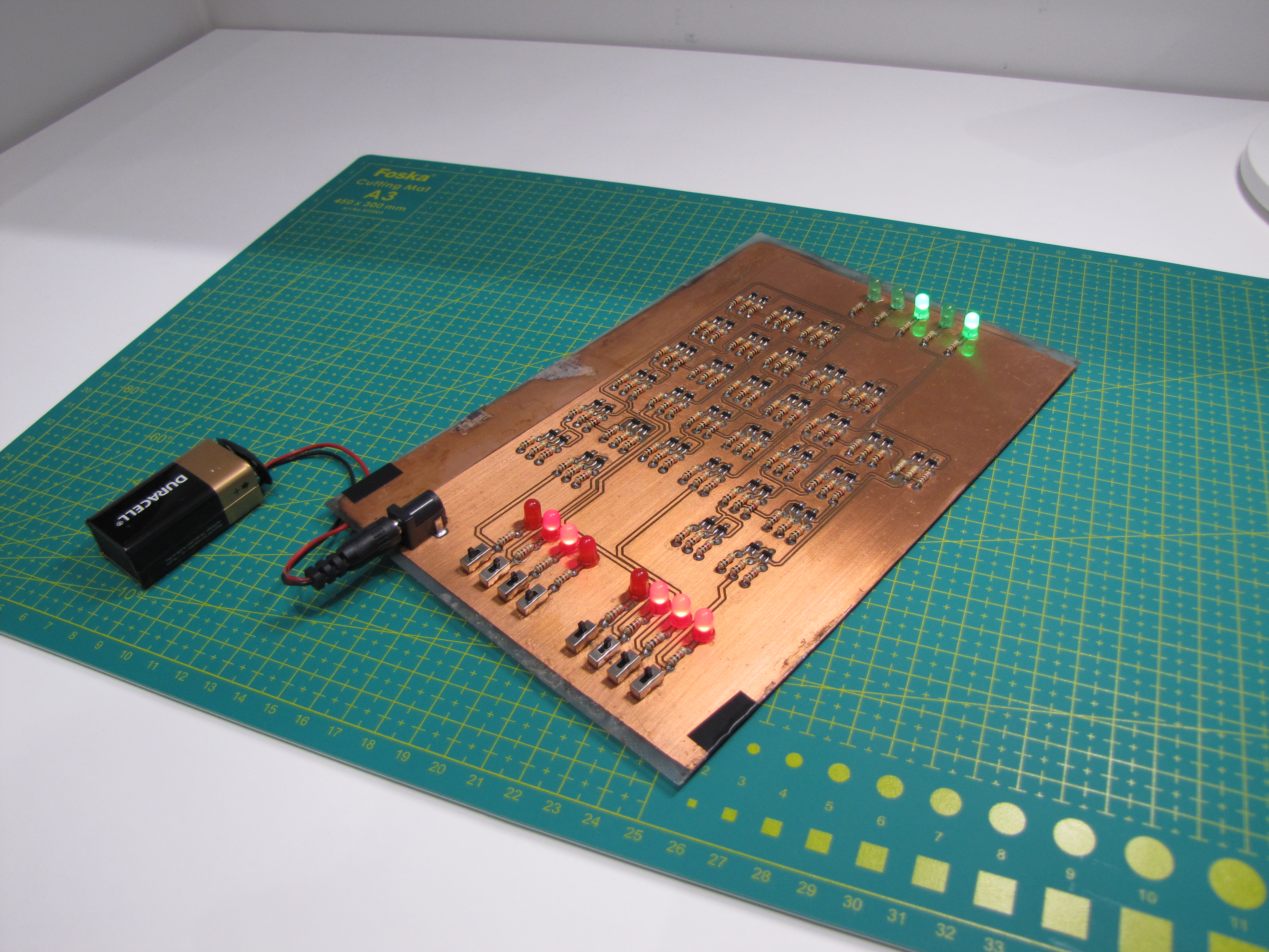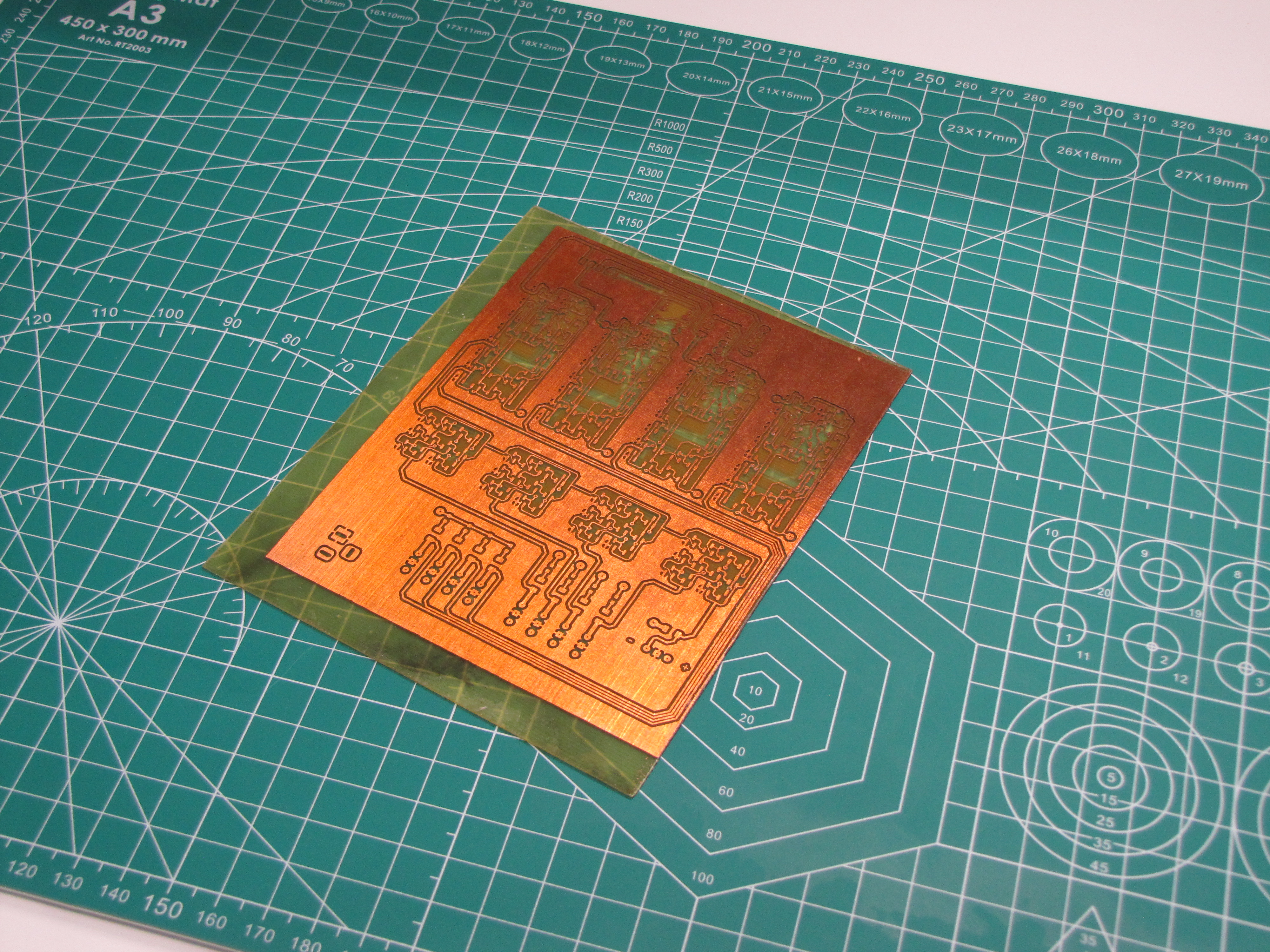Проектът е реализиран на двуслойна печатна платка, ецната в домашни условия.