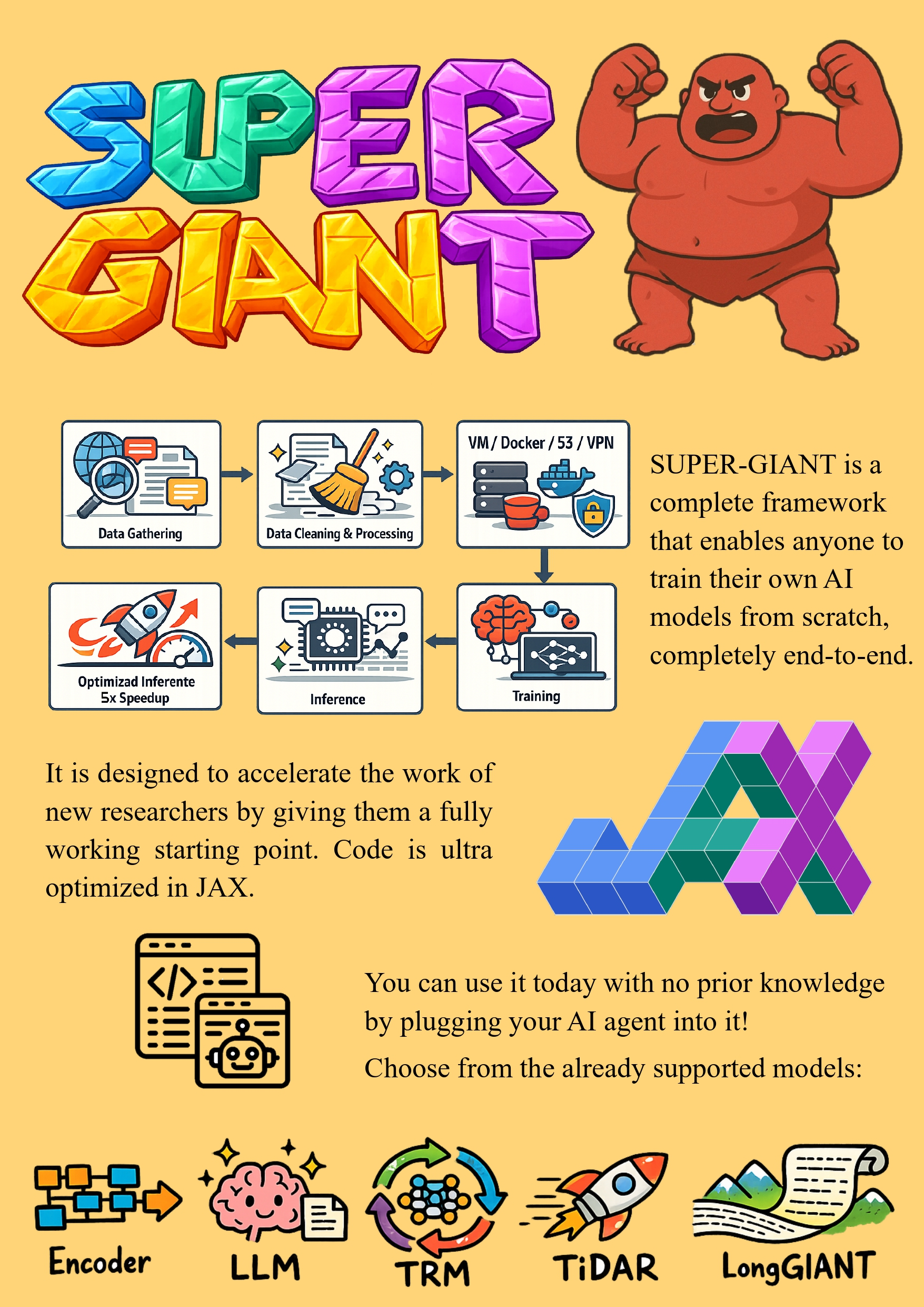 Включва целия pipeline end to end: data preparation, training, checkpointing and resuming, inference, chat, speculative decoding и всички нужни CI/CD, S3, Docker и VM системи и скриптове за автоматизация.
