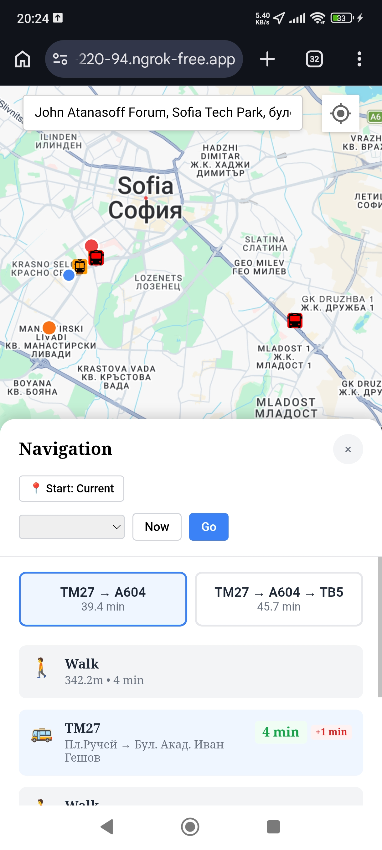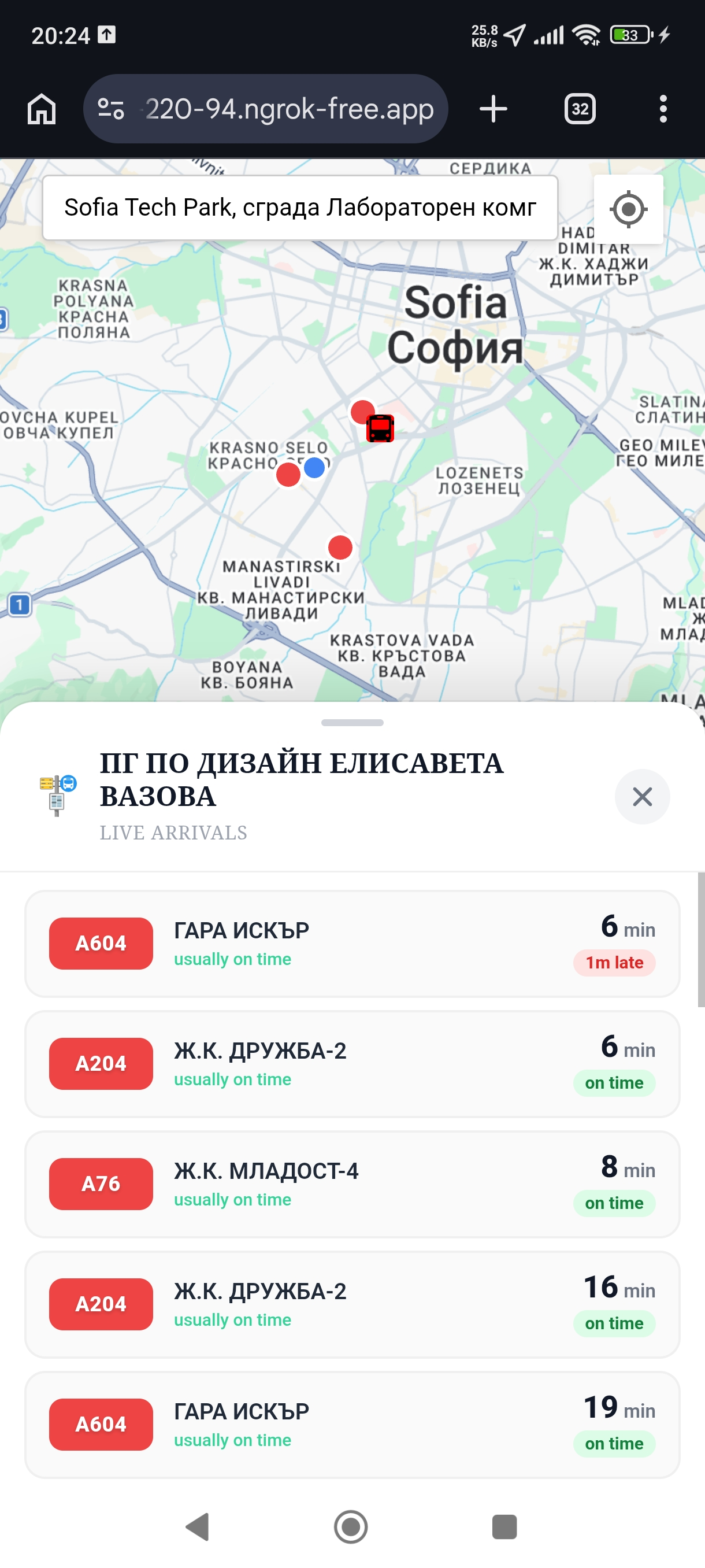 Приложение за навигация на софийския градски транспорт с включено предвиждане на закъснения