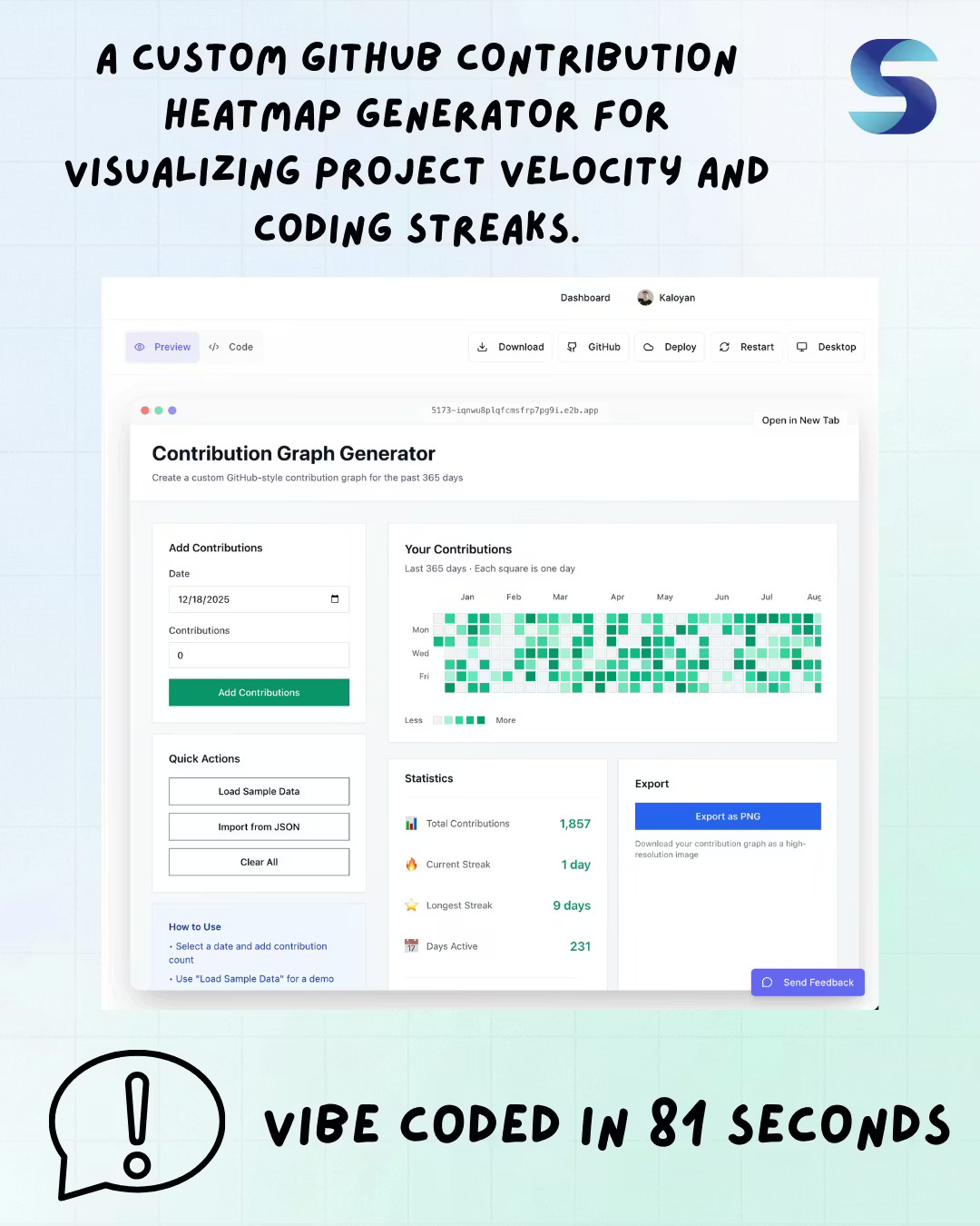Stryama е уеб платформа, която превръща текстово описание на естествен език в напълно функционално React приложение за под 2 минути. Потребителят описва идеята си в чат интерфейс, а AI агент, базиран на Claude Agents SDK, генерира програмен код в реално време. Резултатът се визуализира мигновено в изолирана виртуална среда, без риск за сигурността на платформата.